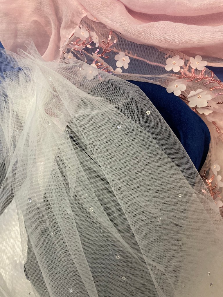 Involving your daughter in the process of choosing her veil makes her feel special and adds meaning to her event. My veils and headpieces are meant to be tailored to your liking. The images below are examples of what I can do for you.