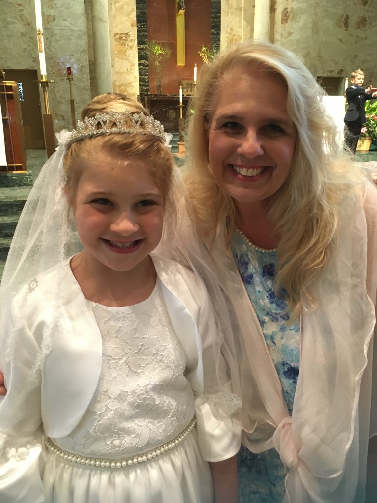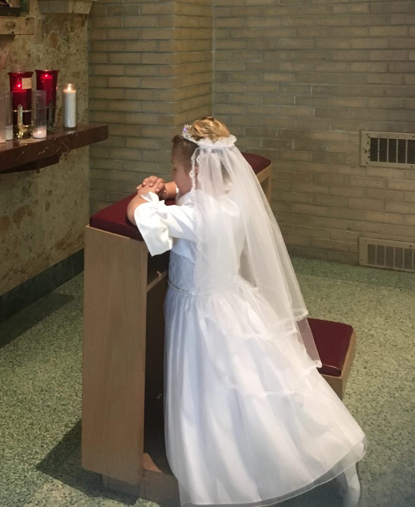 My parish at the time, Saint Monica’s in Whitefish Bay, WI, was so supportive of me. Almost all the mothers of that 2010 First Communion class had me make their daughter’s veil. I was incredibly busy with the joy of creating for these little girls and then to my surprise, a miracle happened. I found out I was pregnant and yes it was a girl and yes she was healthy! My miracle daughter Adriana was born later that year and shares her middle name of Maria with her angel sisters.